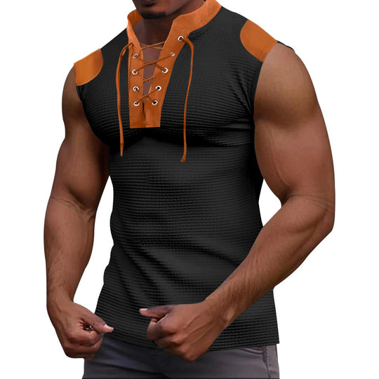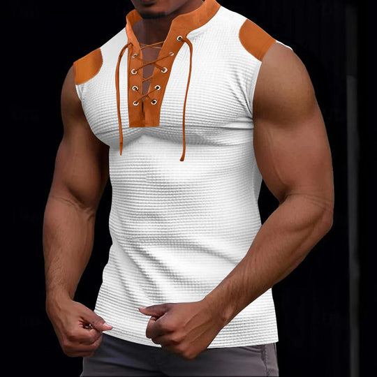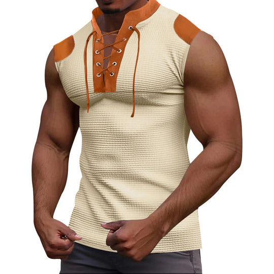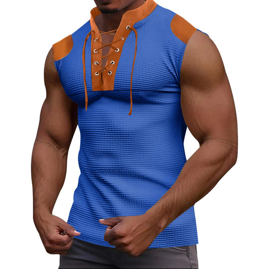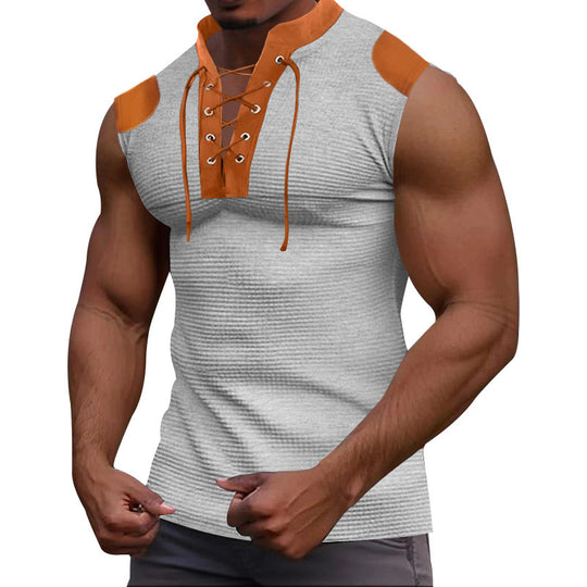 Casual Multicolor Lace-up V-neck Sleeveless T-shirt