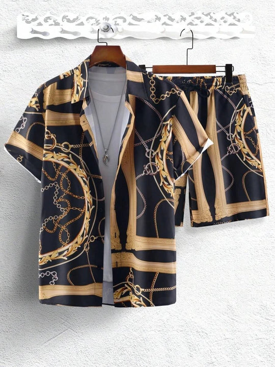 Gold Luxury Chain 3D Digital Printing Shirt Shorts Suit