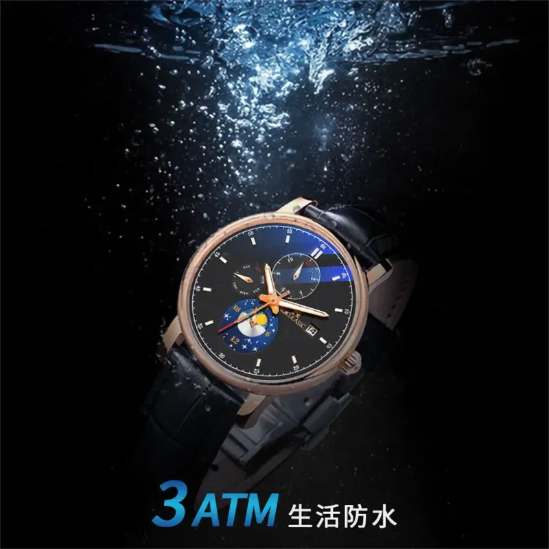 Feature: Shock Resistant,Auto Date,Complete Calendar,Moon Phase,Water Resistant,Week Display